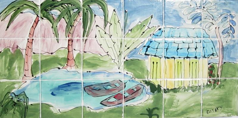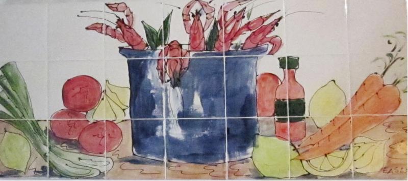 The following are backsplashes on boards...ready to hang. Remember, I can create a backsplash to fit your space and your preferences or design.