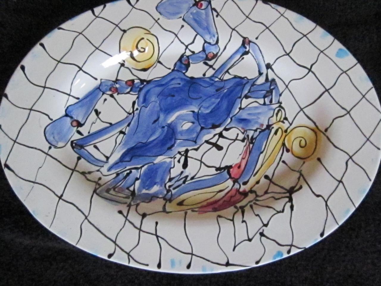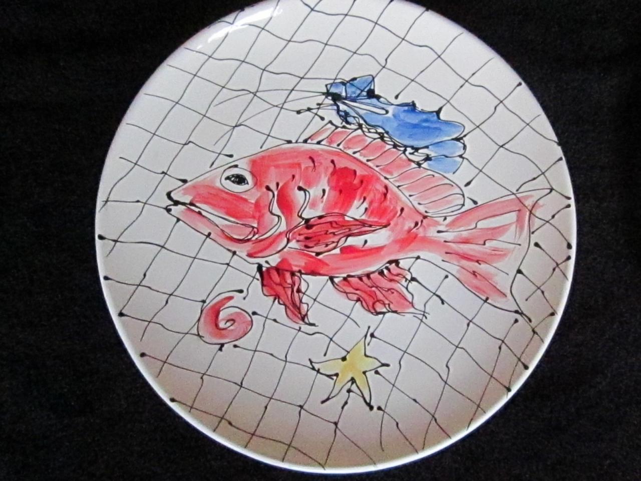 The last 3 plates on this page are my "Catch of the Day" Collection. The square one is a sushi for $30; the oval is a 13" long oval, and the round platter is a 15" round platter and is just $60.